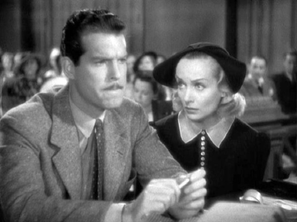 Opposites attract. Lawyer Kenneth Bartlett (Fred MacMurray) is so honest that he refuses to defend the guilty. Naturally his law practice is going nowhere. His wife Helen (Carole Lombard) is a novelist and comes up with the most outlandish woppers on a moment’s notice to get out of a jam. She secretly accepts a job as a private secretary to help out with the finances but discovers the boss is looking for more than she bargained for. After a struggle she flees his flat, leaving her purse and coat. When she goes back to retrieve them, he has been murdered. She tries to explain to Kenneth that she didn’t murder the man but he doesn’t believe her. She then allows him to defend her under a plea of self-defense. With Una Merkel as Helen’s best friend and John Barrymore as a self-styled “criminologist”.